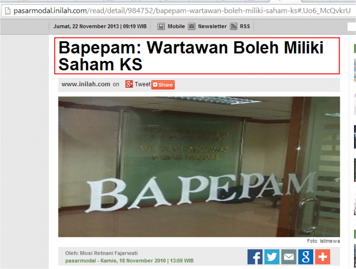 untuk kalangan jurnalis, melainkan juga kepada otoritas pasar modal. Termasuk